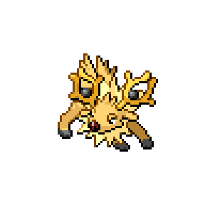 Zapmence never touches the ground, living its entire life high in the sky. Thunderstorms form around them as they fly, and they weaponise the bolts of lightning by using them to strike at other Pokémon and aircraft flying across their path.