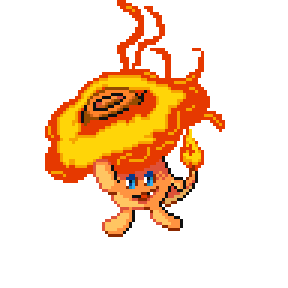 The flower of flame that burns atop Charplume's head isn't very hot. However, the large stem in the middle can project flaming-hot noxious toxins.